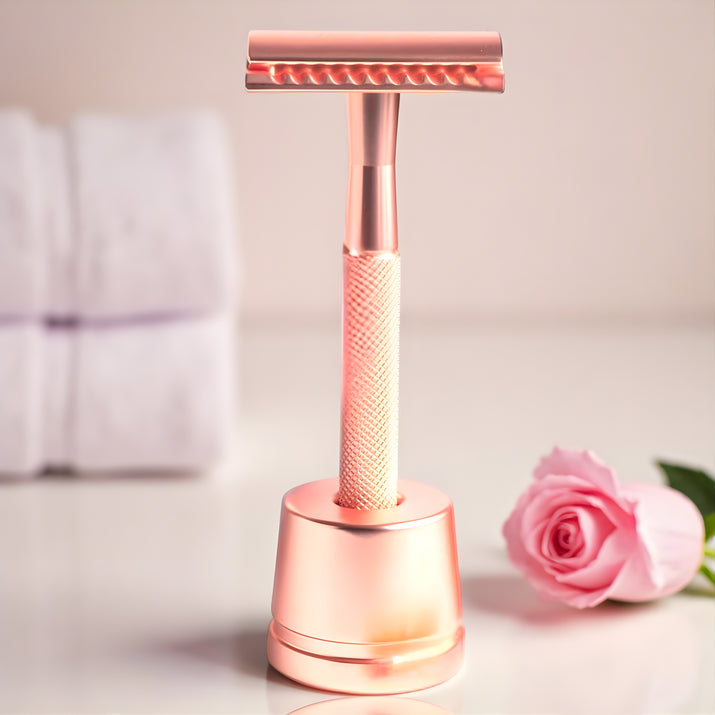 Upplev en ny nivå av rakning med vår eleganta rakhyvel i roséguld. Denna miljövänliga säkerhetsrakhyvel erbjuder skonsam och effektiv rakning för en lyxig upplevelse utan irritation.